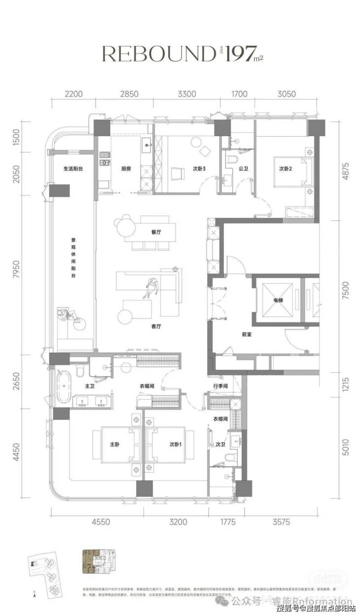 💥约197㎡ |四房三卫两厅 | 三面采光 | 主卧套房270°转角奢华空间全景落地窗