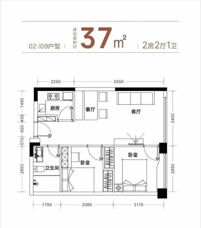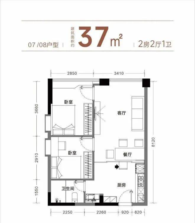此次爆出的开发商一手保留单位,建筑面积约37平2房,实际套内使用面积约54/64平。