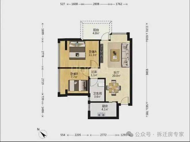 太古城南区62㎡的户型实际套内实用面积在51㎡左右,精致的小两房设计。