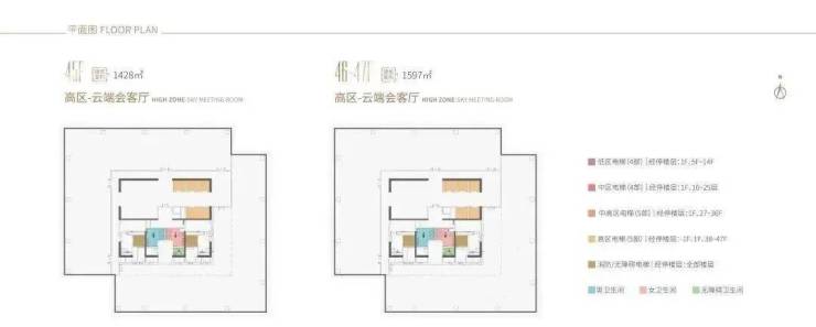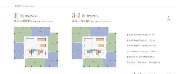 企业会客厅:38-44F:338-479㎡45-47F:1,427-1,596㎡(整层)