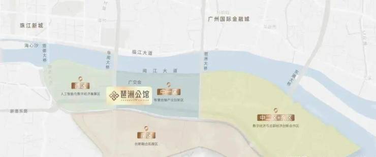 琶洲与珠江新城、金融城形成广州CBD黄金三角,琶洲定位为国家级人工智能与数字经济试验区、省级经济开发区、市级总部经济集聚区等创新平台称号,是广东省谨此一个在市中芯经开区,将打造“数字+会展+总部”融合创新的产业新高地。