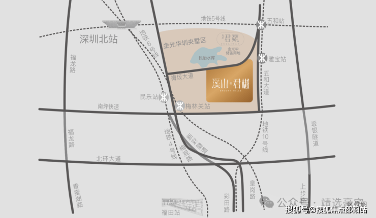 近拥深圳北站—五和双枢纽(未来5/10号线连通深大、深惠、深广中轴城际),一小时大湾区各城从容出行,畅达全国