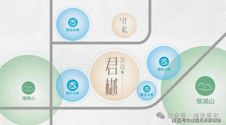 溪山君樾位处深圳“中心湖区“,是深圳最稠密的湖区所在地,项目周边环伺4大自然生态湖泊---民治水库、民乐水库、雅宝水库、南坑水库,居住在此,湖岸微澜风光无限,滋养健康涵养心境,孕育都会生活于家族贵雅之道;独享城市无价峰顶对晤湖景无垠的豁达高远。