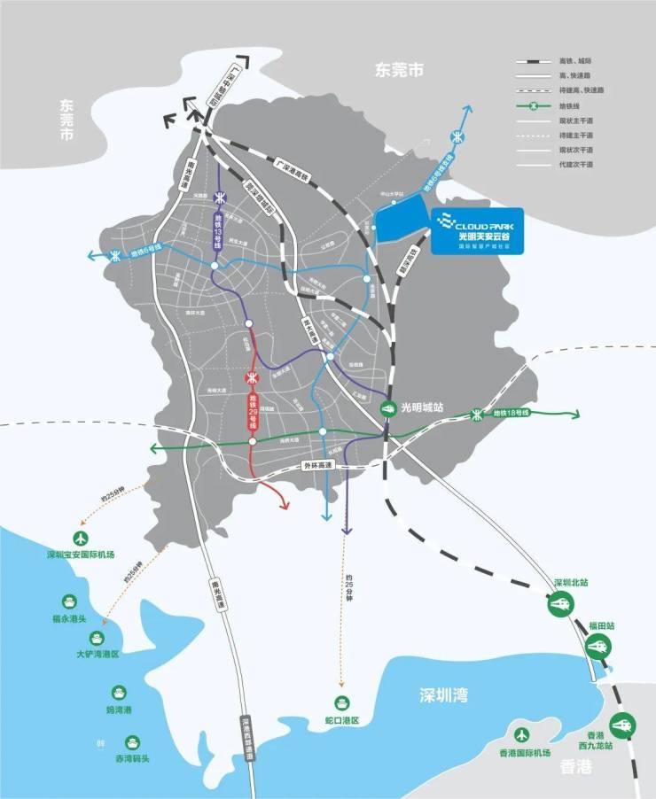 多维立体交通,30分钟速达大湾区核心城市。光明以高铁、地铁、高速为依托,连接深圳、香港、广州、东莞等周边城市,形成30分钟大湾区核心城市交通圈。地铁六号线支线中大站距离项目直线距离大约800米