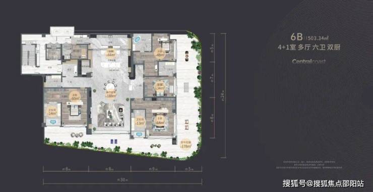6B 【503.34㎡ 4+1室 多厅 六卫 双厨】