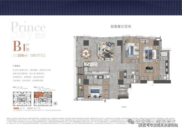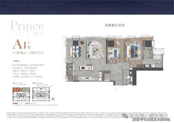 大平面大尺度定位,层高约3.6米,横厅设计确保最大化观景面,全户型纵享环幕视野。项目打造主力建面约215-415㎡纯粹品质公寓共191席,顶层为建面约1270㎡公寓产品。