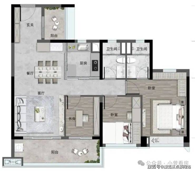 105 平方米 3+1 房两卫和 135 平方米 3+1 房两卫则更适合改善需求