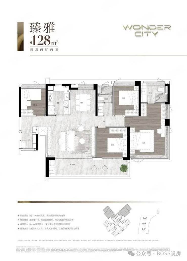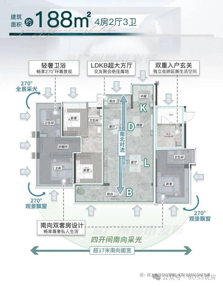 在售面积有122/137/143平四房两卫,168/188平四房三卫;