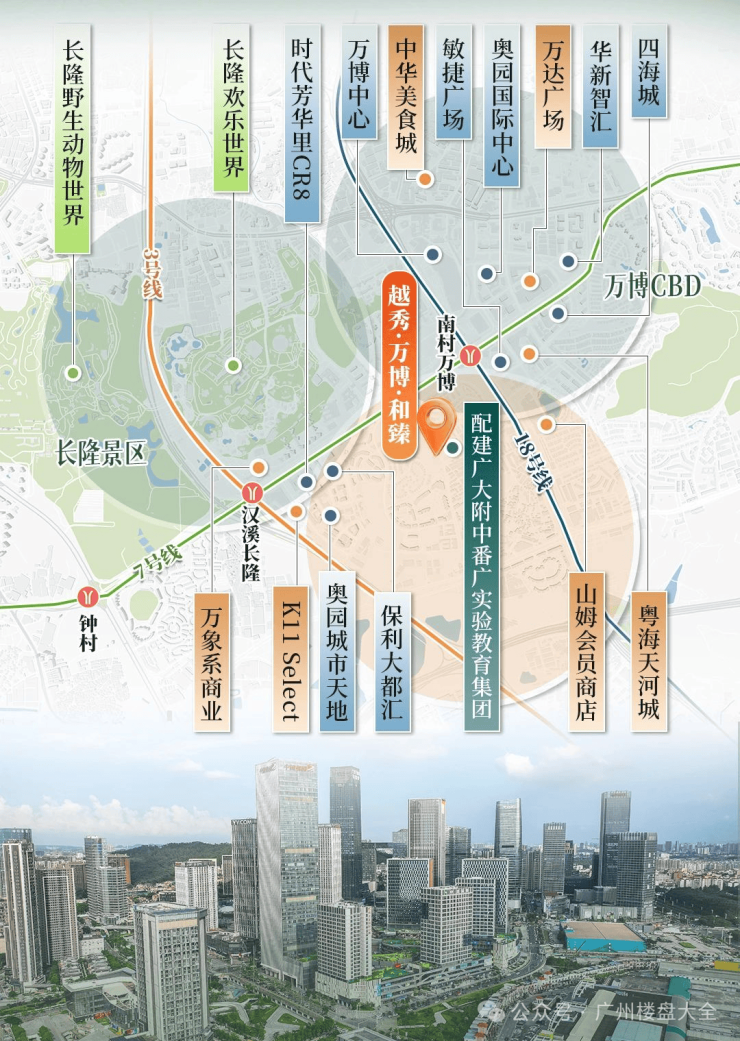 项目属于万博板块,板块商业配套是非常成熟的有万达广场、四海城、粤海广场、万象系商业、敏捷广场、时代芳华里和奥园城市广场等商业体,还有在建的K11和万象系商业,