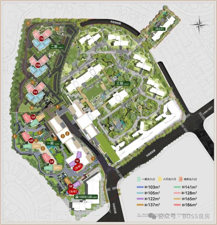 南部组团:与地铁口距离在2公里以上,出行依赖自驾,但学校及医院就在家楼下,周边回迁房很少,居住氛围相对纯粹。