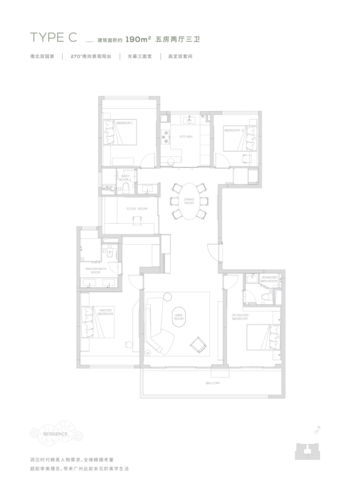 合生缦云主打改善型住宅,户型面积范围在140㎡至325㎡之间。项目提供南北双园景设计,270度超广角观景视野,以及3面开窗的户型设计,保证了良好的采光与通风。主套房配有步入式衣帽间和独立电梯厅,充分考虑了业主对私密性和舒适度的需求。整体户型设计高实用率,最大限度提升空间使用效率,满足不同家庭的需求。