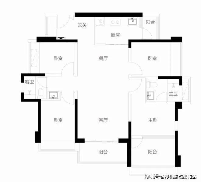 【115-118㎡4房2卫户型】