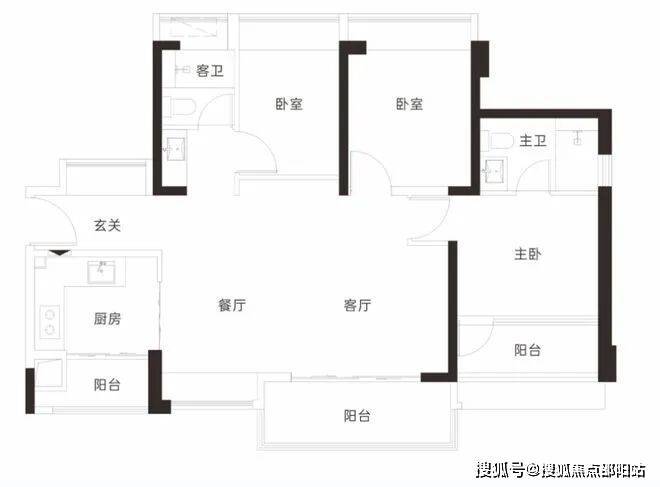 【3栋4栋01/02户型96㎡3房2卫】客厅朝南带阳台,2房朝南,1房朝西/东 单价