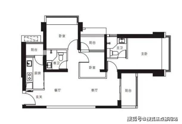 【96-97㎡3房2卫户型】