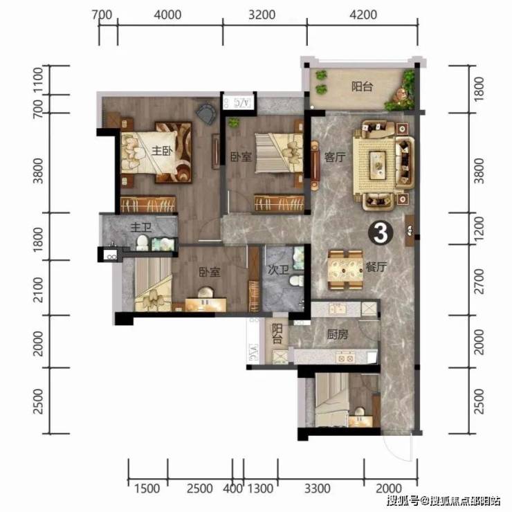▲ 04单位户型 117㎡ | 3+1房两厅两卫双阳台