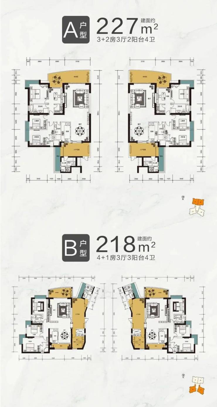【主要户型】:①平层227㎡和218㎡②复式401㎡和405㎡