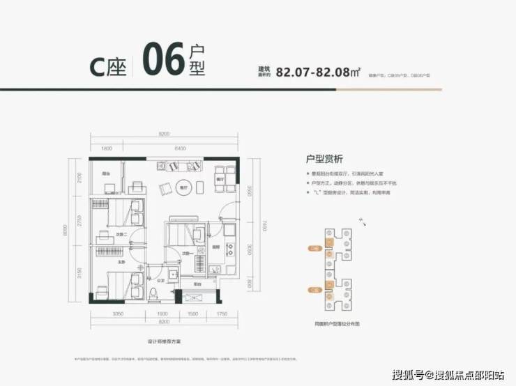 C03户型:约86㎡全能大三房,南北通透+ 全明格局