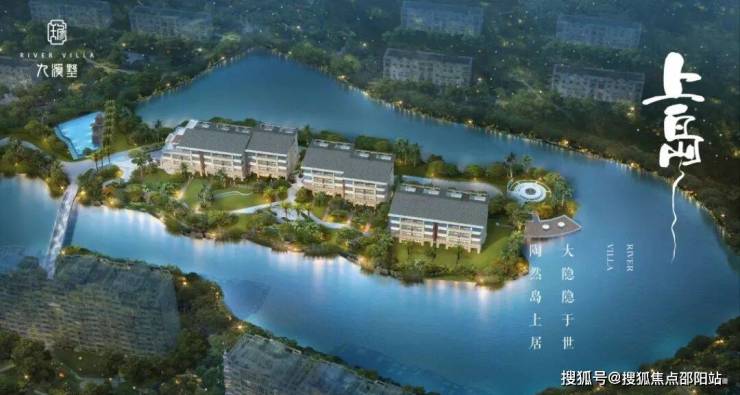 园区特色:我与世界 以岛为介• 1.私密岛居生活:项目以私享岛居为根本,层层置景,营造出幽静风雅的养心居所,配以现代精工细琢,设置曲水流觞、休闲栈道、下沉式庭院、星空露台等,可挥杆垂钓、观星赏月、听溪阅海,打造出不可多得的私密岛居生活地,吸引生活品质追求者们心驰神往。• 2.风水宝地:九溪墅三面环水,以半岛地形伸入池塘,自成环抱聚气之势,水系环绕环境清幽,可谓上风上水之风水宝地。