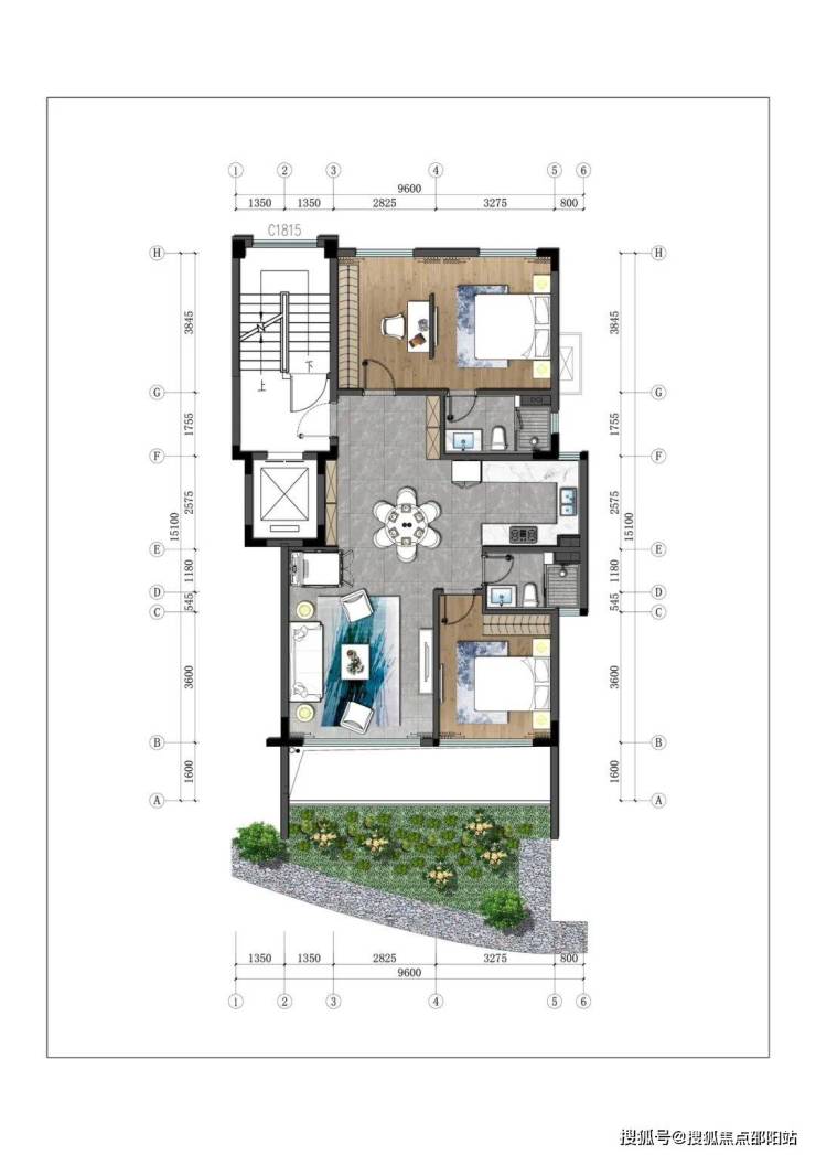 3.下叠:建筑面积约100-110㎡,四房三厅三卫。
