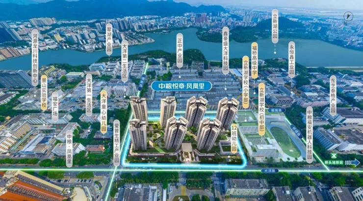 项目300米范围内,自带12班幼儿园/大洋童心幼儿园/凤凰里幼儿园/24班立新湖小学/12班立新湖中学/福桥高级中学/景山实验学校 环伺,集聚约6000稳定师生资源,覆盖上万户家庭,定向吸附钱潮涌动。