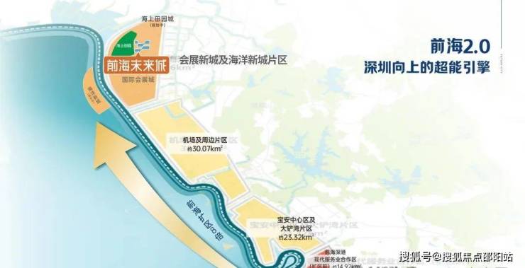 前海8倍扩容,宝安形成“南宝中、北会展”双中心发展格局。从前海1.0(妈湾、前湾、桂湾片区)到前海2.0(会展海洋城),多重战略加持下,成为深圳向上发展的核心引擎。