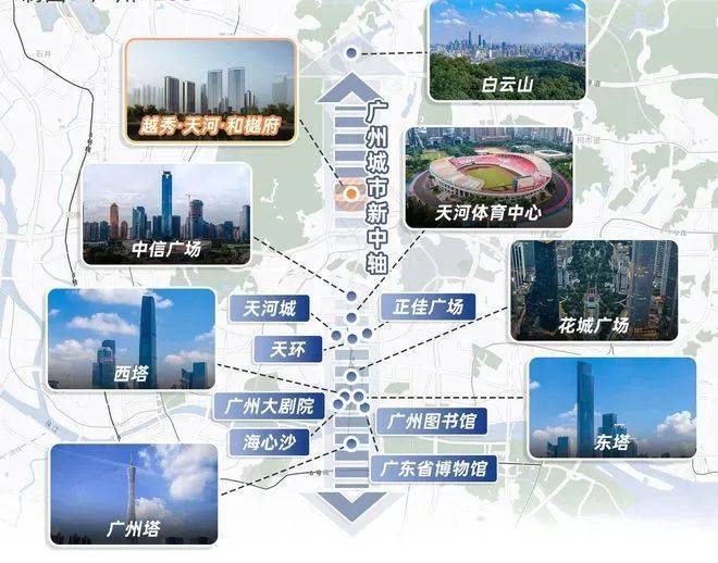 位于广州城市中轴线上的天河北板块,越秀·天河·和樾府距离珠江新城仅约5公里直线距离,