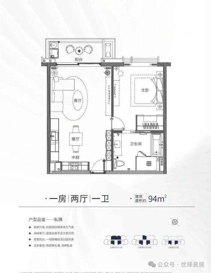 建筑面积约94㎡ 一房丨两厅丨一卫