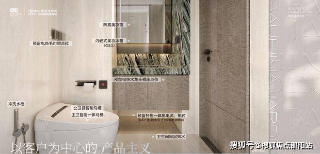 静音专项设计、线形地漏(淋浴间)、同层排水(洗手间)。