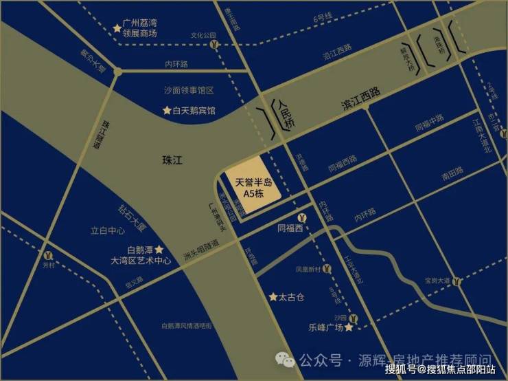 天誉半岛踞守珠江前航道、西航道与佛山水道三江交汇之芯,被誉为广州传统“龙脉聚气”之地。自十三行时期伍家花园肇始,至当代高端住区林立,白鹅潭始终是这座千年商都的“豪宅源点”。A5栋更处半岛头排,百米亲江,俯瞰三江合流浩荡东去,水势聚财,气象万千,既承广府千年商脉遗韵,亦昭示家族永续的昌盛图景。
