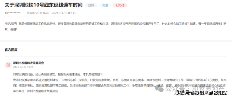 ·凤岗政府官方平台发布,全力配合市谋划推动深圳地铁10号线东延至凤岗