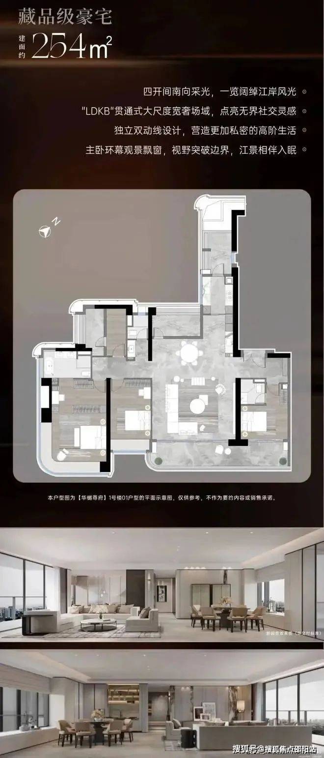 项目主推建面约248-330㎡天际大平层,全系四房设计,专梯入户,南北通透: