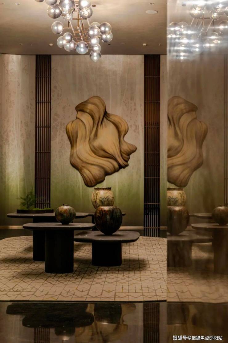从前厅、中厅到电梯厅,灯光渐次柔和,与深超总的生态绿意呼应,大面积的风格化极强石材点缀,都来自全球设计师定制。