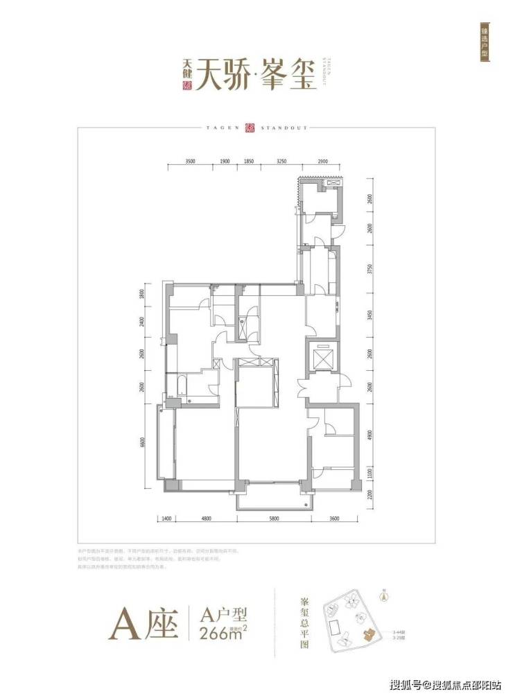 A座:A266㎡4+1房4卫 南北通 3阳台