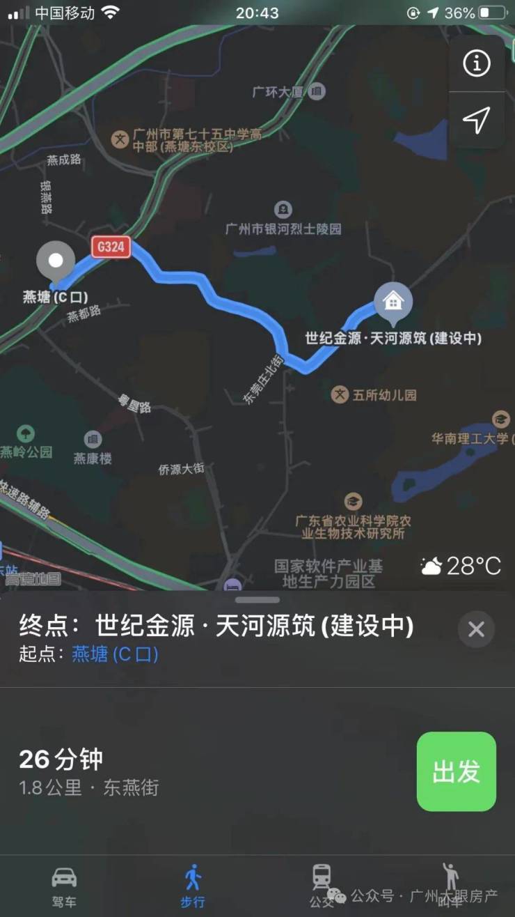 如果是依赖地铁出行的朋友,可能就没那么方便了,附近有这两个地铁口,3-6号线的交汇站--燕塘站和天河客运站,距离都差不多1.7公里,天河客运站地铁口可以在小区门口做400路公交,公交车每天工作时间15-30分钟不停的接驳到地铁口和项目直接发车。