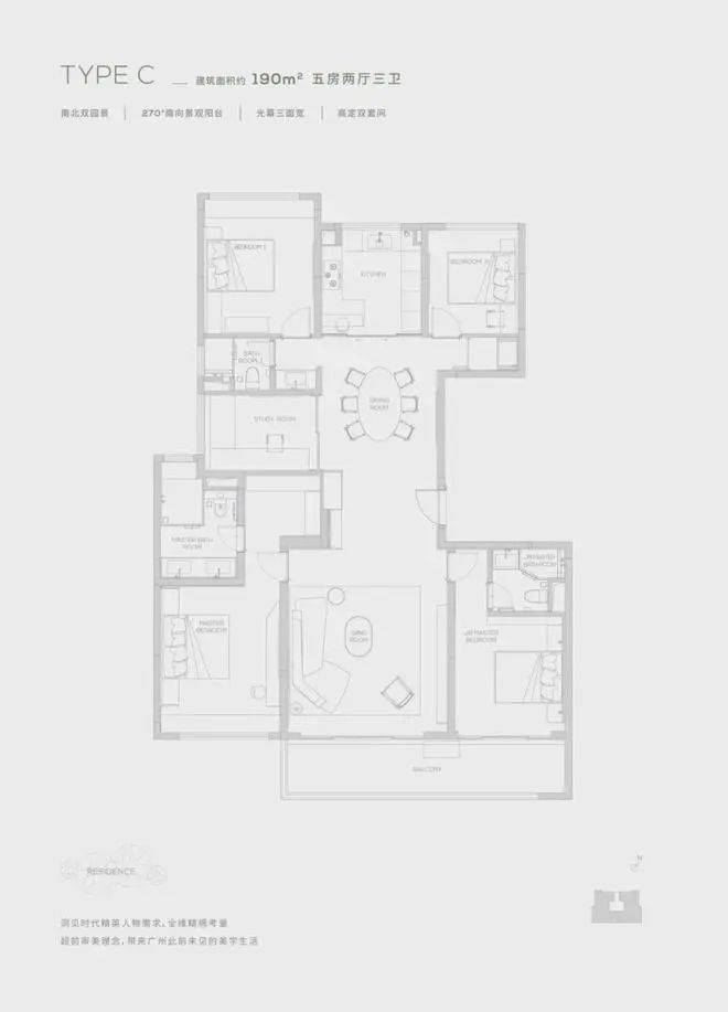 项目产品涵盖145-320㎡三至五房,目前在售户型:145㎡三居、174㎡四居、190m²五居和260m²五居,是天河市中心难得的半山大宅。