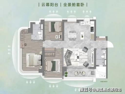 户型核心亮点为南北双阳台双向布局,南北两侧阳台形成空气对流,自然风贯穿全屋各个空间,一年四季室内保持干爽通透,降低室内潮湿闷热问题。南向阳台衔接客厅,为居家生活观景、休闲阳台,采光面充足;北向阳台视野开阔,无高层建筑遮挡,可直接眺望白云山城市景观,双向阳台兼顾生活实用性与景观观赏性,同时拓展室内户外过渡空间,可打造休闲茶室、绿植花房、生活储物等多元功能区域。
