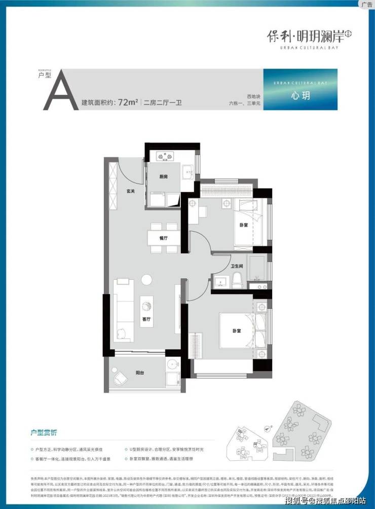 竖厅格局,客厅3.2米开间,卫生间干湿分离,得房率:75.61%(不含赠送),阳台有西南向、东南朝向或朝西向。