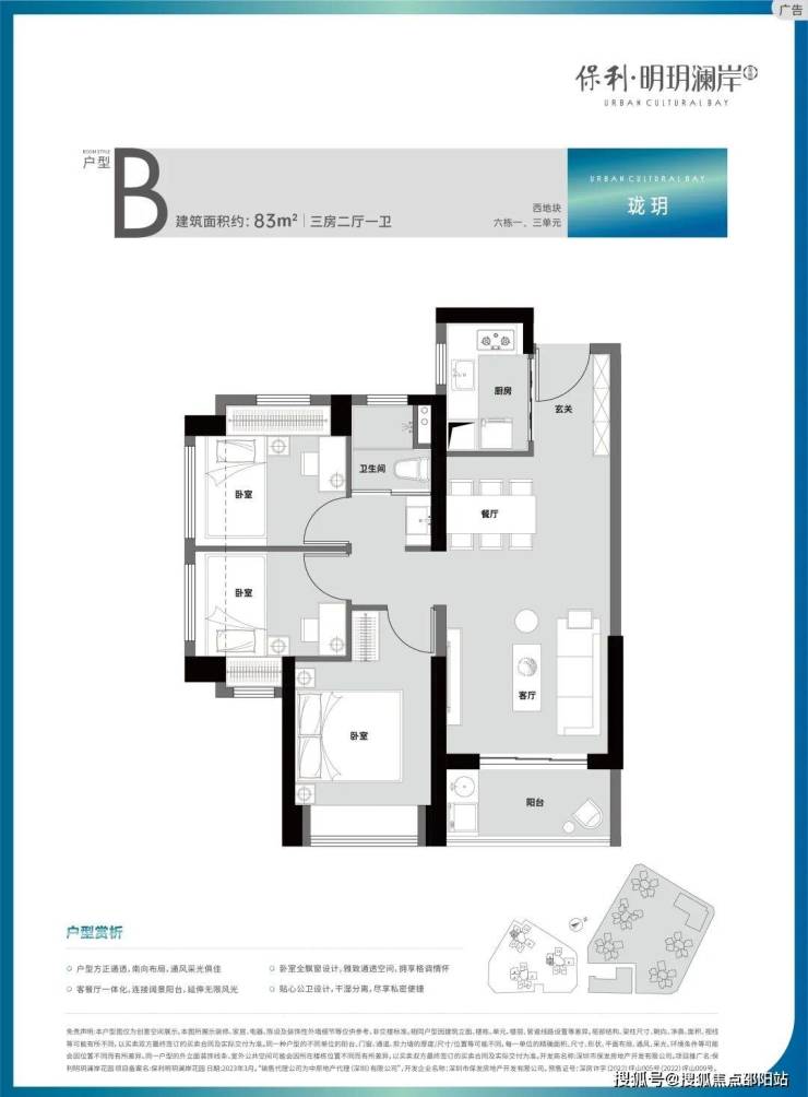 竖厅格局,客厅3.5米开间,进门独户玄关,主卧大套间,公卫三段式分离设计,得房率:75.6%(不含赠送),阳台有西南向、东南朝向或朝正南向。