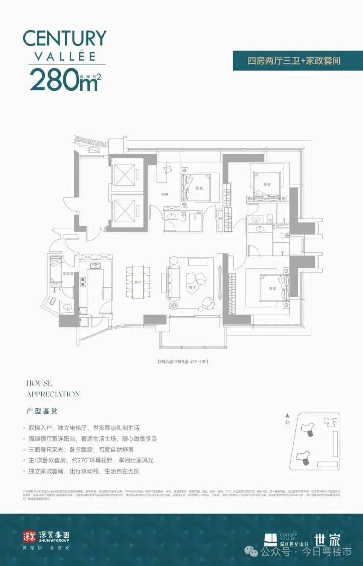 深业世纪山谷世家大平层住宅出售,销售户型233平米,280平米,386平米三至四房和420--1080平云端复式户型