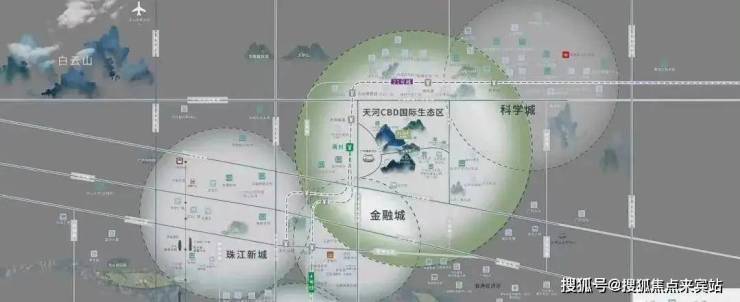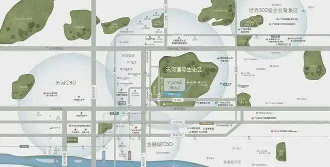 择址天河国际生态区核心,与两大经济引擎天河CBD和金融城CBD,保持约6公里的直线距离。
