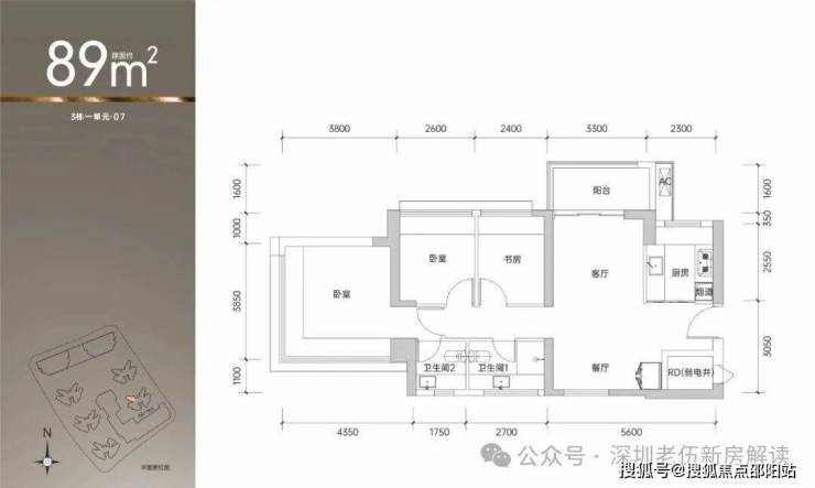 07户型:88平(南北通透)单价38200-39100,总价336-344万。