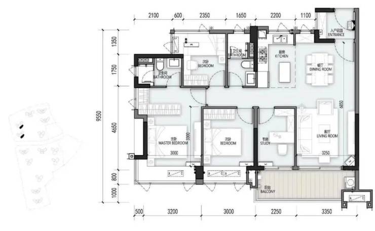 客餐厅连通,可变L 型客厅,形成视觉大空间
