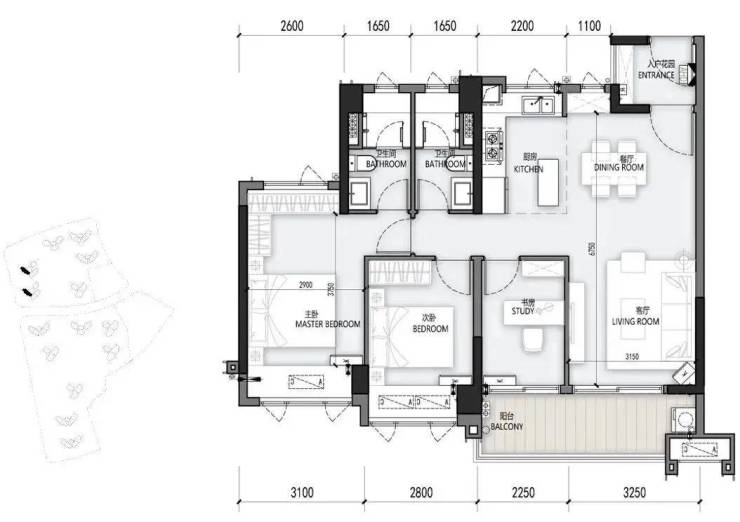 11m宽景阳台,进深最大为2.95米,满足更多想象