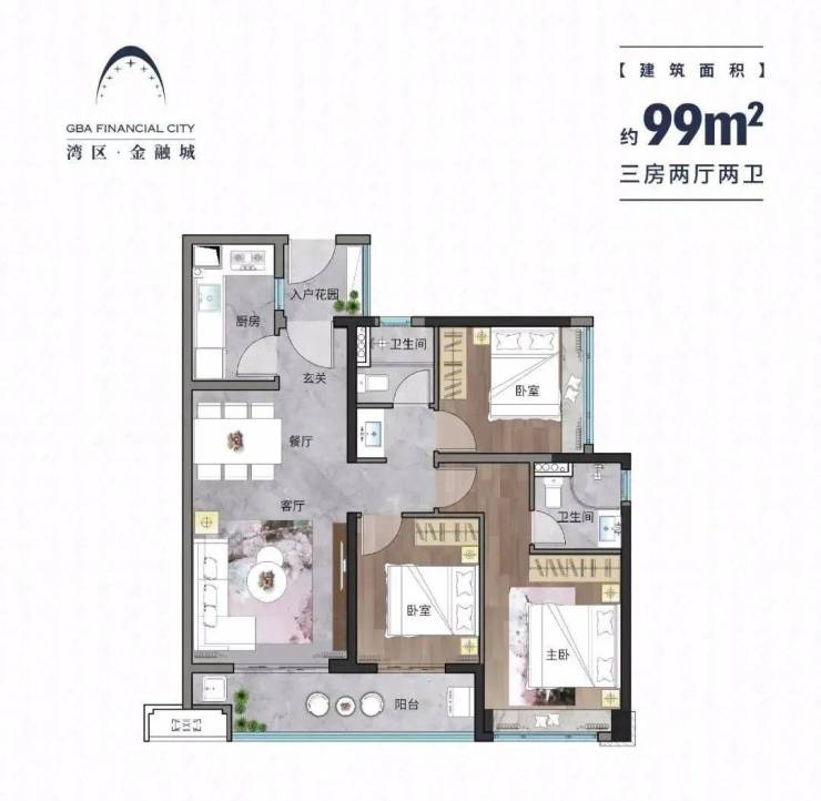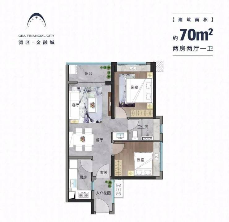 湾区·金融城提供建筑面积约**70-135㎡**的户型选择,覆盖刚需及改善型购房需求:
