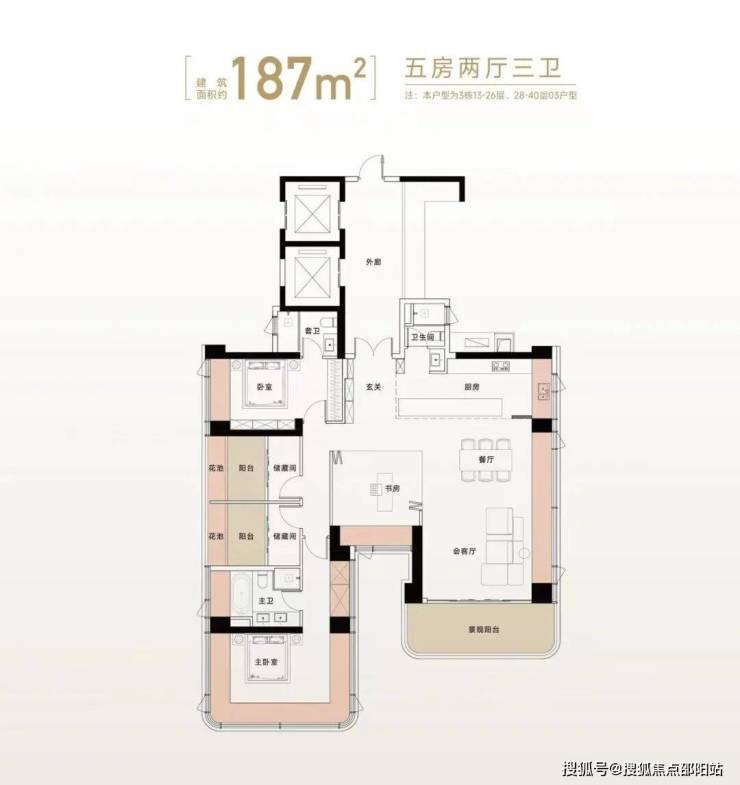部分建面约146㎡和约187㎡的大户型,采用2梯1户配置,私密性、尊崇感强拉满。