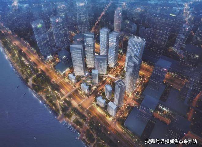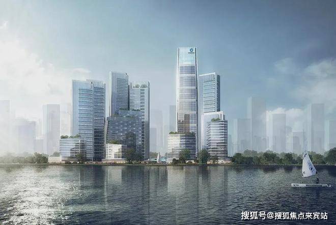 项目一线临江,搭配现代商务全玻璃幕墙,南高北低,最大程度展现一线江景。