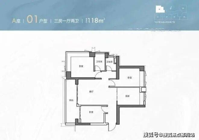 A01户型,118㎡,3房2厅2卫