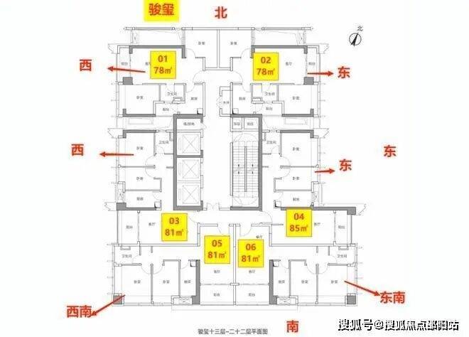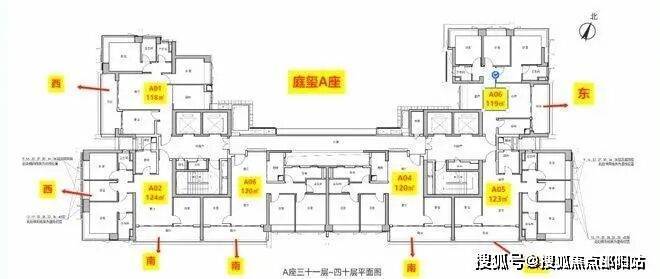 A06户型也是端头户型,三面采光,客餐厅东西通透。客厅、阳台和主卧朝东北,次卧朝西北。这个户型相对来讲,比较方正,但是朝向上东侧有B座的遮挡,有一定的对视