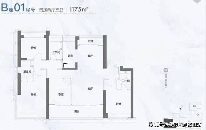 B01/02户型,174-175㎡,南北通4房2厅3卫