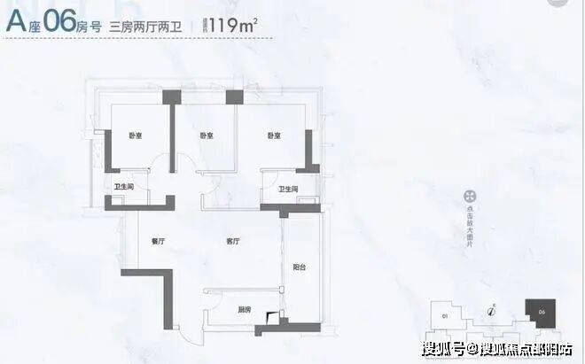 A06户型,119㎡,3房2厅2卫
